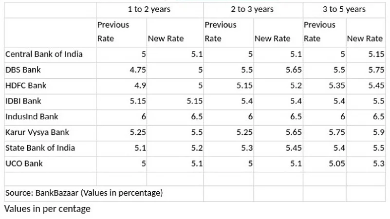 Within a few days of State Bank of India and HDFC Bank increasing interest rates on fixed deposits (FDs), several other banks, including IDBI Bank and IndusInd Bank, followed suit. Earlier, Central Bank and UCO Bank also increased FD rates (see table).