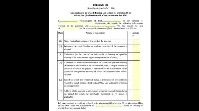 The IT department usually asks for six pieces of information from an NR in form 10F. But CBDT, in a circular on July 16, 2022, mandated some forms, including 10F, to be filed electronically on the income tax portal.