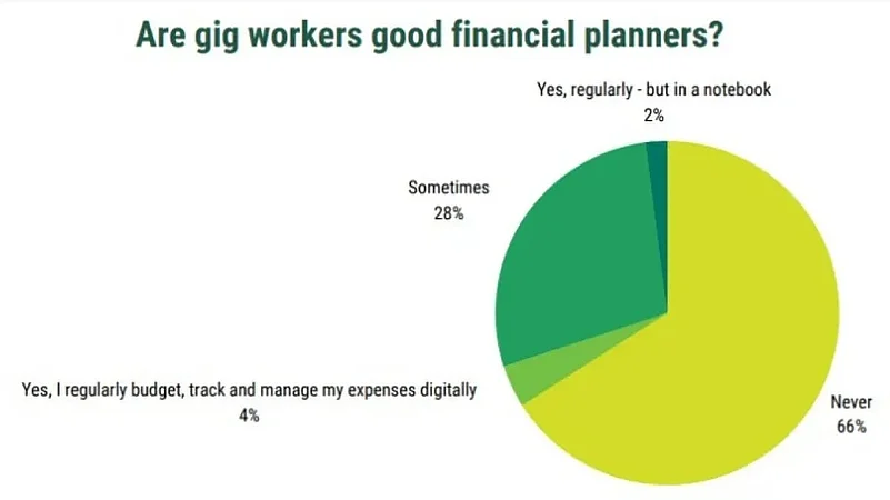 Based on the survey, 66 per cent workers were found to have never managed their finances. About 28 per cent workers said that they sometimes managed their finances, and only 6 per cent gig workers tracked their finances either digitally or in notebooks.