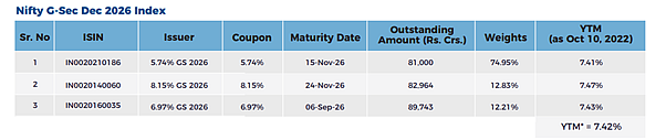 Table showing NSE Nifty G-Sec Dec 2026 Index Portfolio it will take.