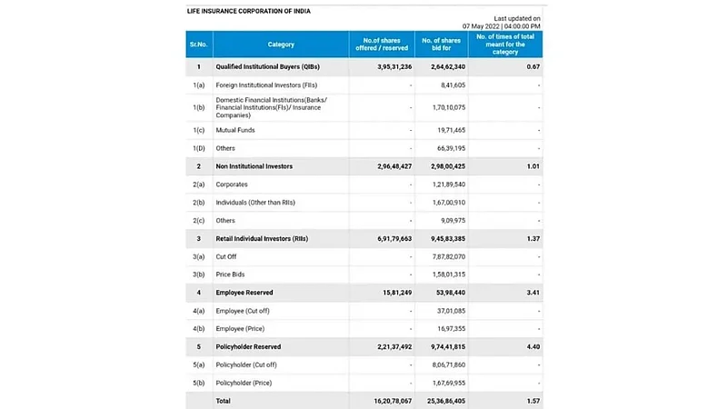 The offer received bids for 223,698,915 (223.6 million) shares against the offered 162,078,067 (162 million) equity shares (excluding shares offered to anchor investors), as per the 7:00 pm data available on the Bombay Stock Exchange (BSE) and the National Stock Exchange (NSE) on May 6. This means that the issue has been oversubscribed by 1.38 times.