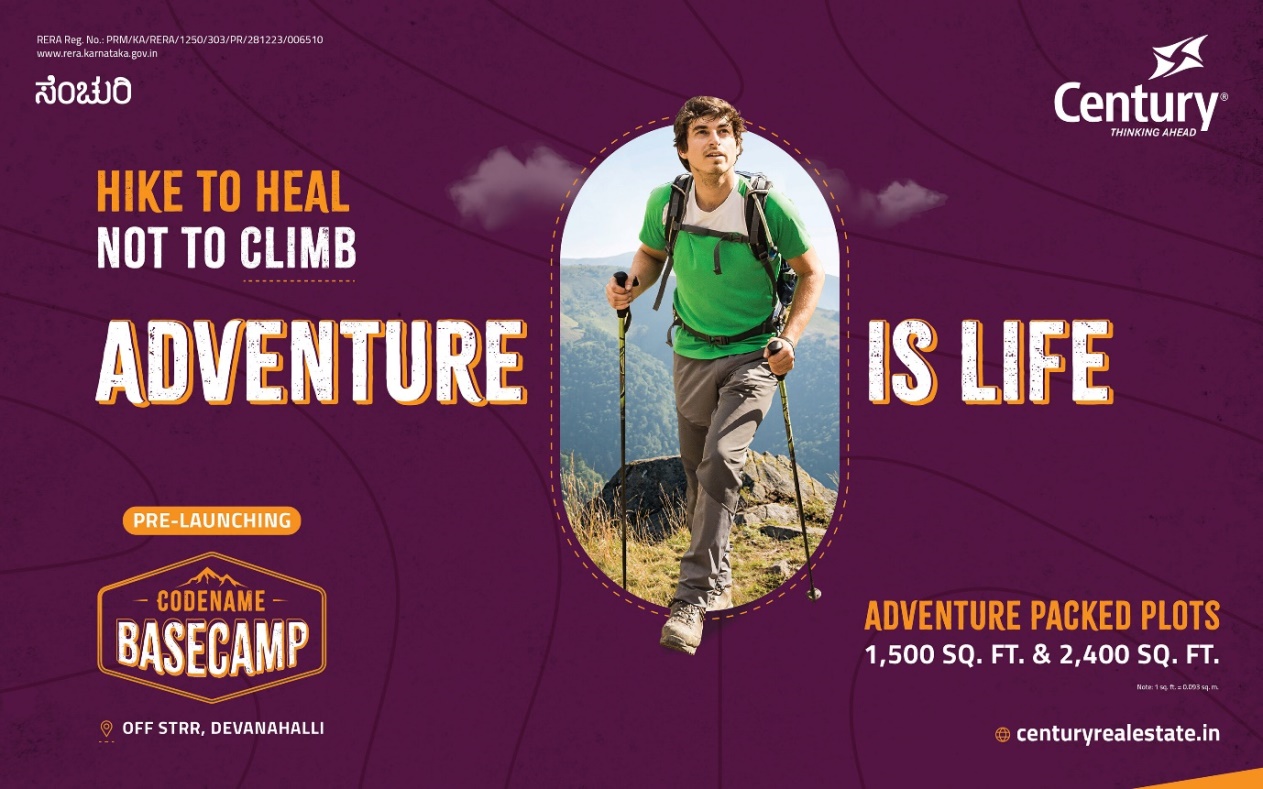 Century Real Estate, one of Bengaluru’s leading developers, has announced the resounding success of Codename Basecamp with Phase 1 of the development sold out within 24 hours. This one-of-a-kind adventure-themed plotted development, strategically located off STRR in North Bengaluru brought in INR 150 crores of sales to the company on its first day of pre-launch, contributing further to the company’s best-ever year for sales.