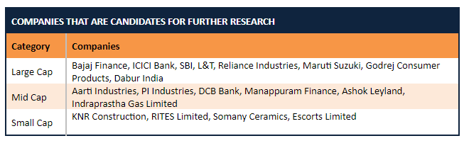 Investment Thesis: If one looks at the companies that represent the Indian stock markets and are included in the benchmark indices such as Sensex and Nifty, they will find that a lot of positivity is already built in the stock prices and therefore further upside is limited in the large cap space. Although benchmark indices Sensex and Nifty are close to all-time highs, the broader market, particularly the mid- and smallcap segment, have been battered over the past one and half years. The S&P BSE Midcap index is still down by about 14 percent from its 52-week high while the S&P BSE Smallcap index is down by over 19 percent from its peak. It is therefore expected that going forward the big outperformance in terms of returns could come from the broader markets, which include select names in the mid cap and small cap space. Investors as an investment strategy should therefore accumulate good quality stocks in the midcap and smallcap space in small steps. These stocks can be volatile at times however; the risk reward proposition looks favorable as a significant number of stocks in this space are still in the oversold territory. We have collated a list of top companies in the large cap, midcap and smallcap categories, which we believe, can provide superlative results in the midterm to long term. The names in the largecap space are a little expensive but the companies are market leaders in their area of operation therefore the premium valuation are justified to an extent.