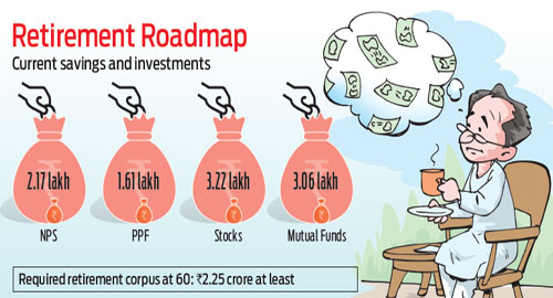 In order to accumulate a corpus which would be sufficient to cater to your rising expenses you need to start an automated savings of Rs 7,300 per month and increase the investments by 7 per cent each year. The assumption made to reach this figure is that your existing investment of Rs 10 lakh is only for retirement and assuming a 10 per cent return on your investments.
