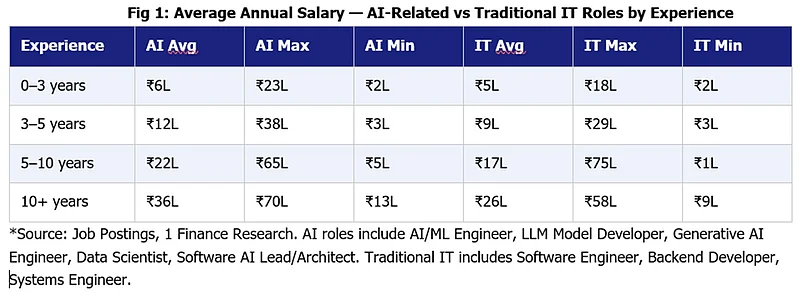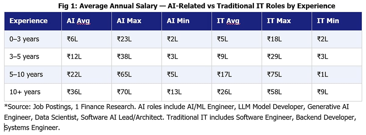 AI and data roles typically pay 20-40 per cent more than traditional IT roles at similar experience levels. Experienced AI professionals earn Rs 35-70 lakh annually, while many traditional IT professionals plateau between Rs 23 and Rs 58 lakh. The implication: the degree matters less than the specialisation it enables.