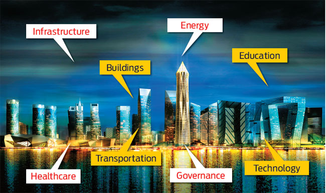 Mahatma Gandhi had once said, “The true India is to be found not in its few cities, but in its 700,000 villa-ges.” Well, that may have been true sometime, but not anymore. According to a McKinsey Global Institute (MGI) study of 2011, the population in Indian cities will go up from 340 million in 2008 to 590 million by 2030, and account for 40 per cent of India’s total population. The constant migration to cities has put energy, transportation and, housing resources under strain. Little doubt, that the increasing migration of population to the urban areas has pitched up the demand for smart cities. So, what is a smart city? To begin with, it is a city which will have intelligently planned transportation and connectivity system, an efficient level of infrastructure, i.e., airport, highways and roads, ecofriendly and efficient energy supply and lastly, a well digitalised system of data centres, high speed fibre network, Internet gateways, and the like. It will also consist of efficient disaster and waste management system, which will improvise the living standard and health care factors. Basically, what separates a smart city from any other city is the way it is planned and designed to support the ever-increasing population without compromising on the living standards. GIFT city is one of the first smart cities which have been conceptualised as a global financial and IT services hub. A first of its kind in India, it is designed to be at or above par with globally benchmarked financial centres, such as Shinjuku, Tokyo; Lujiazui, Shanghai; La Defense, Paris; and London Dockyards.