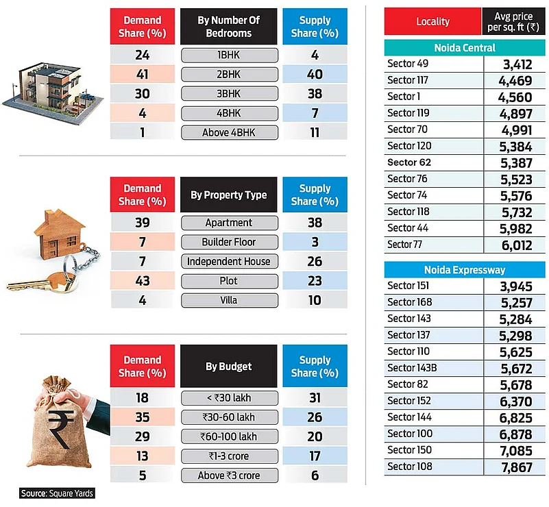 Rapid industrialisation and the emergence of new educational institutions has given Noida’s housing market an edge over other cities in Delhi NCR. Besides, opportunities for homes across budgets, along with advantages of robust connectivity and great infrastructure, have made it attractive for investors, too. Noida’s mid-segment properties ruled the online searches, echoing the upbeat demand in Q3 2022. About 65 per cent of the total searches were for properties in the Rs 30 lakh to Rs 1 crore range, while the Rs 30-60 lakh segment saw over a third of the demand share. New launches in Q3 were limited, owing to the hike in repo rate hike and upward price correction. Two-bedroom configurations were the most sought-after, accounting for 41 per cent of the total demand.