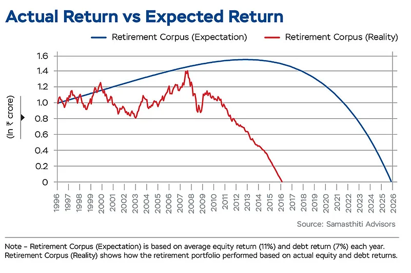 Calculating a retirement corpus on the basis of average returns can have disastrous consequences as different sequence of returns can lead to different outcomes