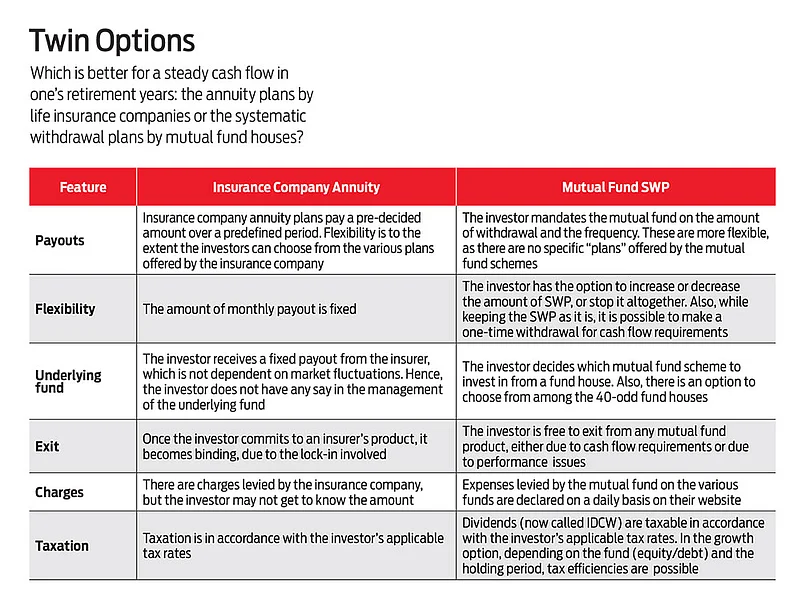 In this context, there are two products you can consider for investing and planning your cash flows. One is annuity products from insurance companies and the other is a systematic withdrawal plan (SWP) with your mutual funds. Both allow for regular withdrawals.