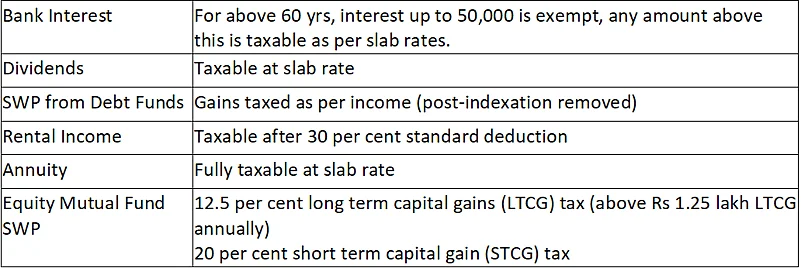C] Depend on Annuity or Bank Interest: Both annuity and bank interest provide a predictable cash flow. However, annuity payouts are fully taxable at the slab rate, whether from life insurance policies or the National Pension System (NPS). Also, interest income is fully taxable (except up to Rs 50,000 under Section 80TTB).