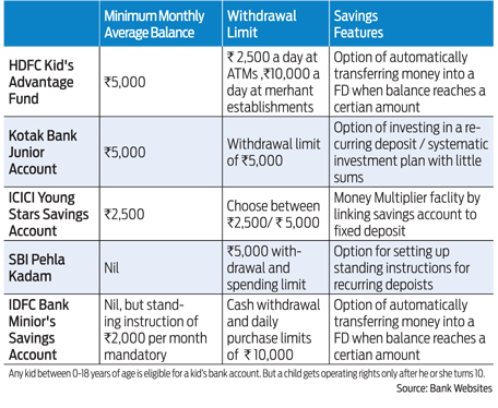 Banks offer specially designed children’s savings accounts that give them a head start on the concept of saving and managing money. Anagh Pal takes a look at what’s on offer