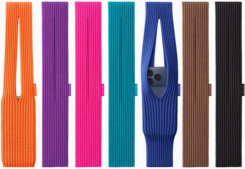 The iPhone Pocket is designed for everyday use. According to Apple, its open-knit fabric stretches to securely hold any iPhone model along with other small items, while allowing users to peek at the screen without removing the device. It can be carried in multiple ways, by hand, attached to a bag or worn on the body to provide convenience and adaptability for different situation.