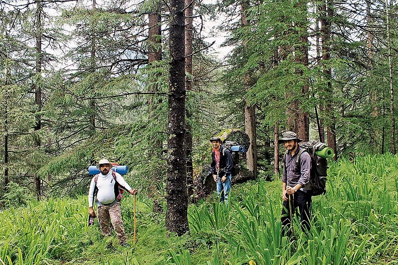 Manish Pillai (left) at the Great Himalayan National Park, Himachal Pradesh