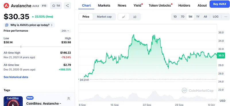The AVAX crypto is among the most undervalued altcoins in the market currently. Amid growing whale demand, the price increased by 23% to $30 over the past month. Its next target will be a retest of its 30-day high of $35, placing it among the altcoins to watch.