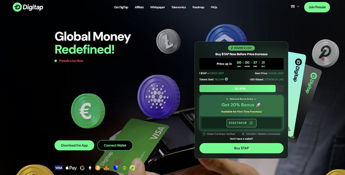 While most presales are still preparing MVPs, Digitap is already onboarding users, processing transactions, and expanding internationally. In contrast to traditional altcoins that rely on market sentiment, Digitap’s value is tied directly to real financial activity. With the potential for billions of dollars in global payments to flow through the omni-bank model, $TAP is positioned to be the next big thing in crypto.