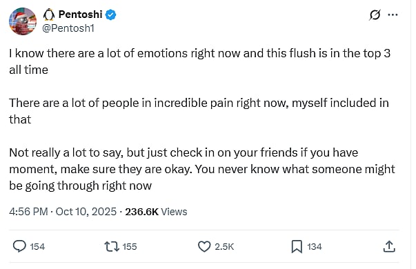 "There are a lot of people in incredible pain right now," well-followed trader Pentoshi admitted as millions watch their positions evaporate. The event has led to an increasing number of investors seeking cryptocurrency projects that offer solutions to real-world problems, aiming to protect themselves against future crashes.