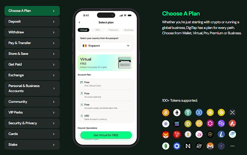 One of Digitap’s defining features is its Visa card, which facilitates cross-border payments and allows users to convert cryptocurrencies to fiat currency by simply swiping their cards. It supports Apple Pay and Google Pay, making it even easier to spend cryptocurrencies.