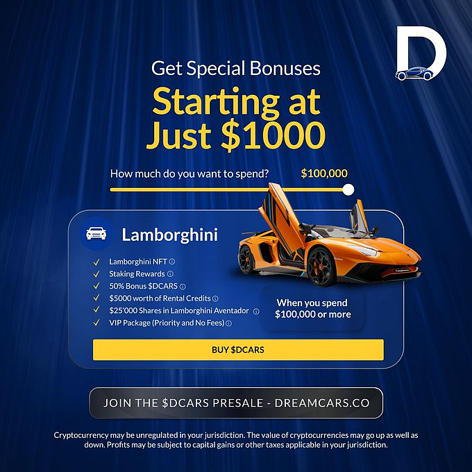 Early investors benefit from guaranteed lower prices, bonus tokens, exclusive NFTs, and access to the Dreamcars Members Club for those who invest at least $1,000 in the pre-sale, along with staking rewards.