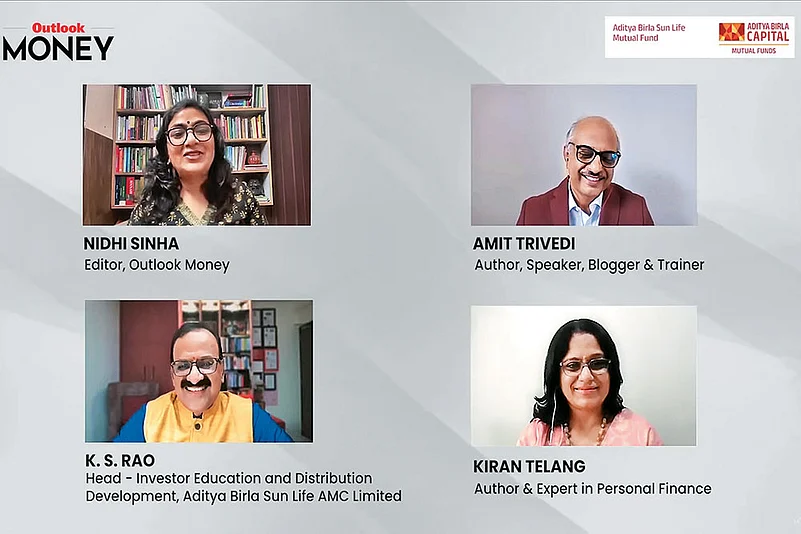 The experts at the webinar were K.S. Rao, Head of Investor Education and Distribution Development at Aditya Birla Sun Life AMC; Amit Trivedi, co-founder of OSAT Knowledge Private Limited and a renowned author; and Kiran Telang, a certified financial planner, a Sebi-registered investment advisor and an author. The webinar was moderated by Nidhi Sinha, Editor, Outlook Money.