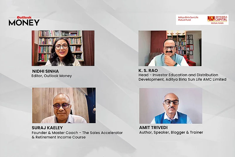 The latest webinar, hosted by Outlook Money in collaboration with Aditya Birla Sun Life Mutual Fund as part of their investor education initiative, explored the essence of smart investing. The panel featured three experts: K.S. Rao, Head of Investor Education and Distribution at Aditya Birla Sun Life AMC; Amit Trivedi, co-founder of OSAT Knowledge; and Suraj Kaeley, founder of the Sales Accelerator Program at Reflect and Grow. The webinar was moderated by Nidhi Sinha, Editor, Outlook Money. The experts shared practical insights into what makes an investor “smart,” especially in today’s dynamic financial landscape.