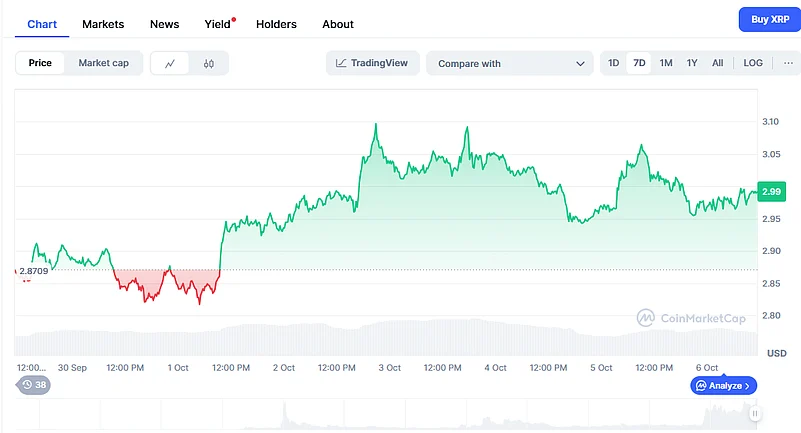 After a strong climb that saw the Ripple price test the $3.10 resistance, XRP has retraced to lower levels. This pullback suggests sellers are defending the $3 zone.
