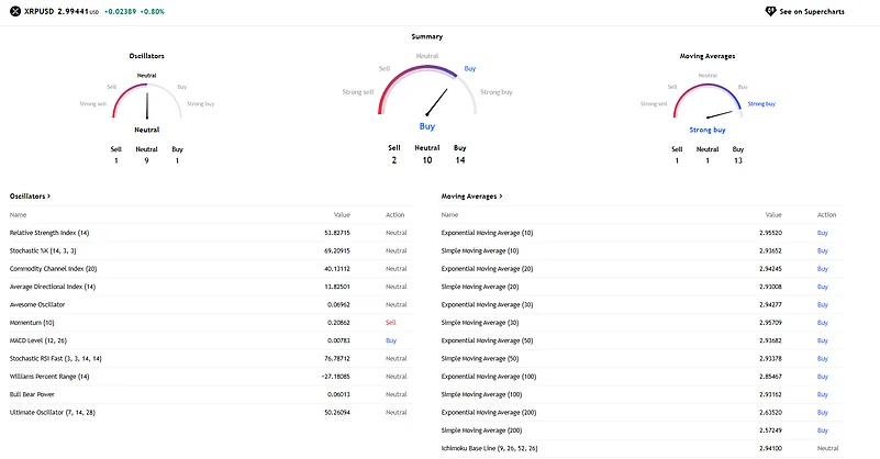 Also, the Awesome Oscillator is green and rising, a sign that bullish momentum is building. If buyers defend the $2.90–$2.95 region, the Ripple price may attempt another push above $3.00.