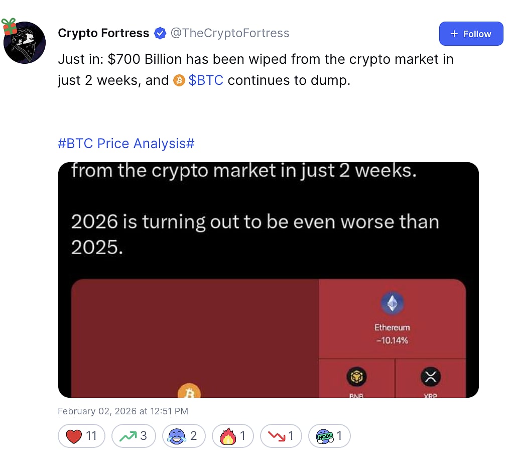While those readings could point to a short-term bounce, the bigger issue is that Bitcoin has now lost a level that held for months. That has pushed the near-term focus away from chasing upside and toward managing risk.