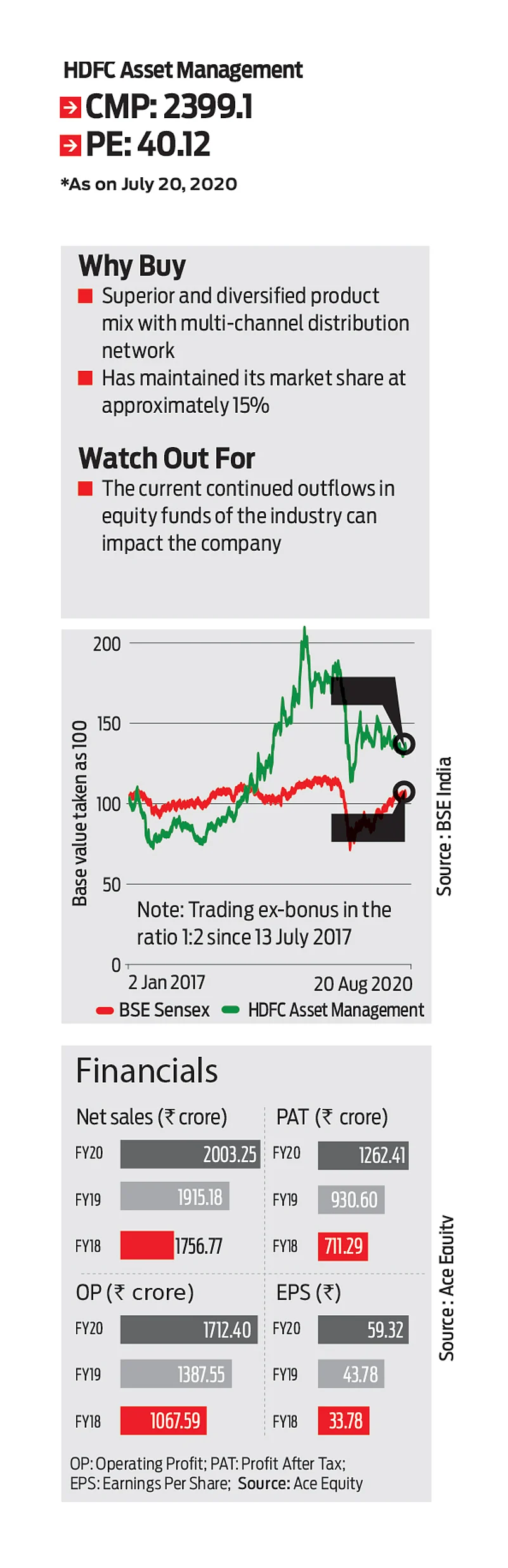 Courtesy its over 65,000 empanelled distribution partners across Independent Financial Advisers (IFAs), national distributors and banks, today HDFC AMC has an established distribution reach through a total of 221 branches of which 145 are in B-30 locations. “We expect the premium valuation of the AMC to continue owing to its higher operational efficiency and industry leading AUM metrics. We continue to apply a P/E of 43x on FY22 estimates (E) earnings per share (EPS),” says an analyst at KR Choksey.
