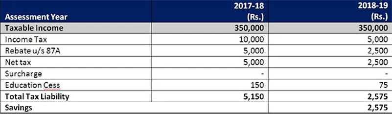 The Union Budget 2017 proposals have finally been announced, putting to rest the widespread expectations, contemplation and conjecture regarding the income tax for individual tax payers. The Finance Minister did heed the plea of the lower income group and the salaried tax payers to reduce their tax burden, especially in the aftermath of demonetization and the hardships they faced, and reduced the tax rate for the lower income level i.e the income slab of Rs. 2.5 lakh to Rs. 5 lakh from 10% to 5%. With this reduction, a person earning an income of up to RS. 3 lakh will not have to pay any tax while a tax payer earning an income between Rs. 3 lakh to Rs. 5 lakh will find that his tax has been reduced substantially. The Tables below indicate how the tax will change for an individual taxpayer less than 60 years of age having table income of Rs. 3.5 and Rs. 5 lakh: